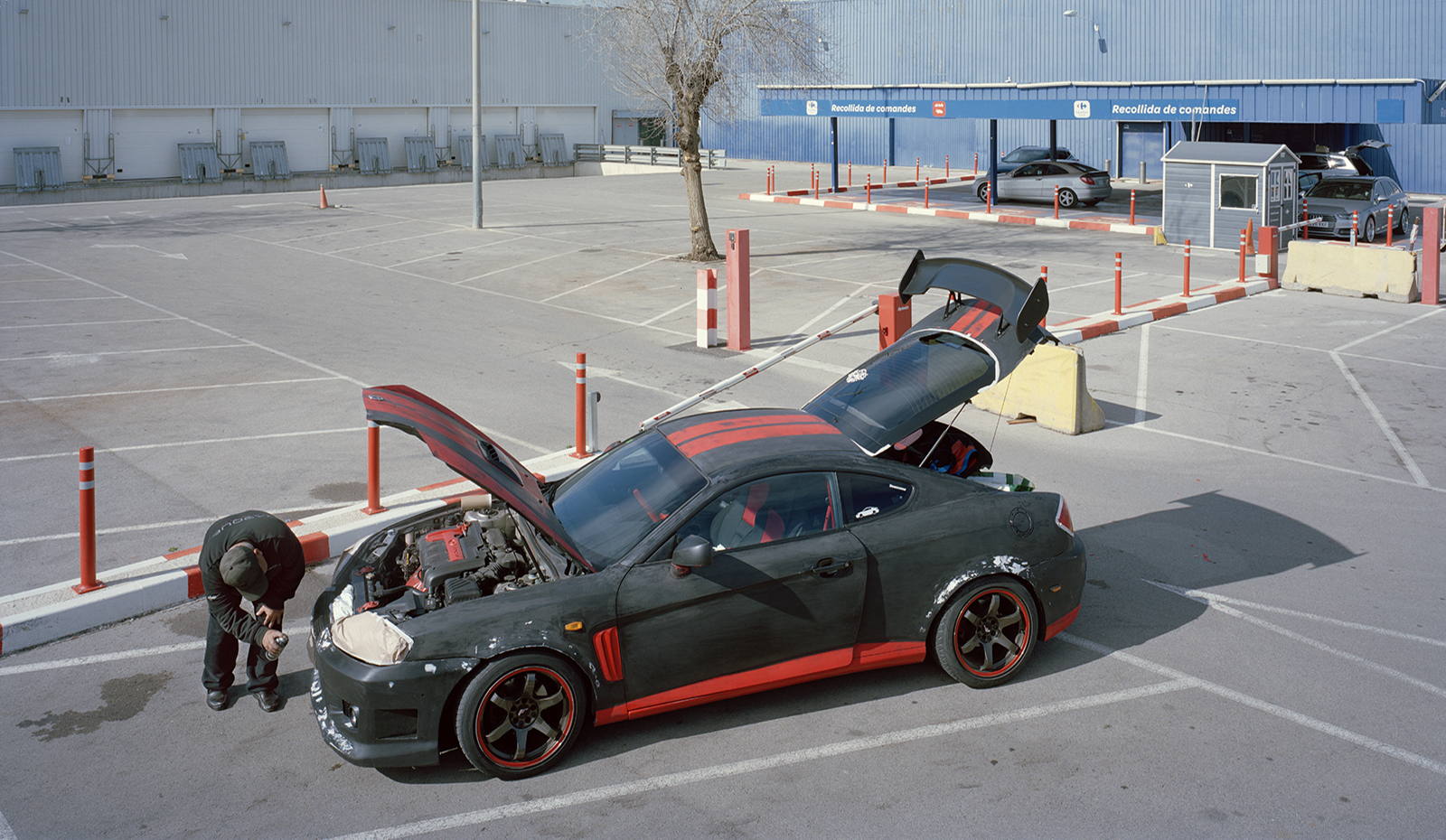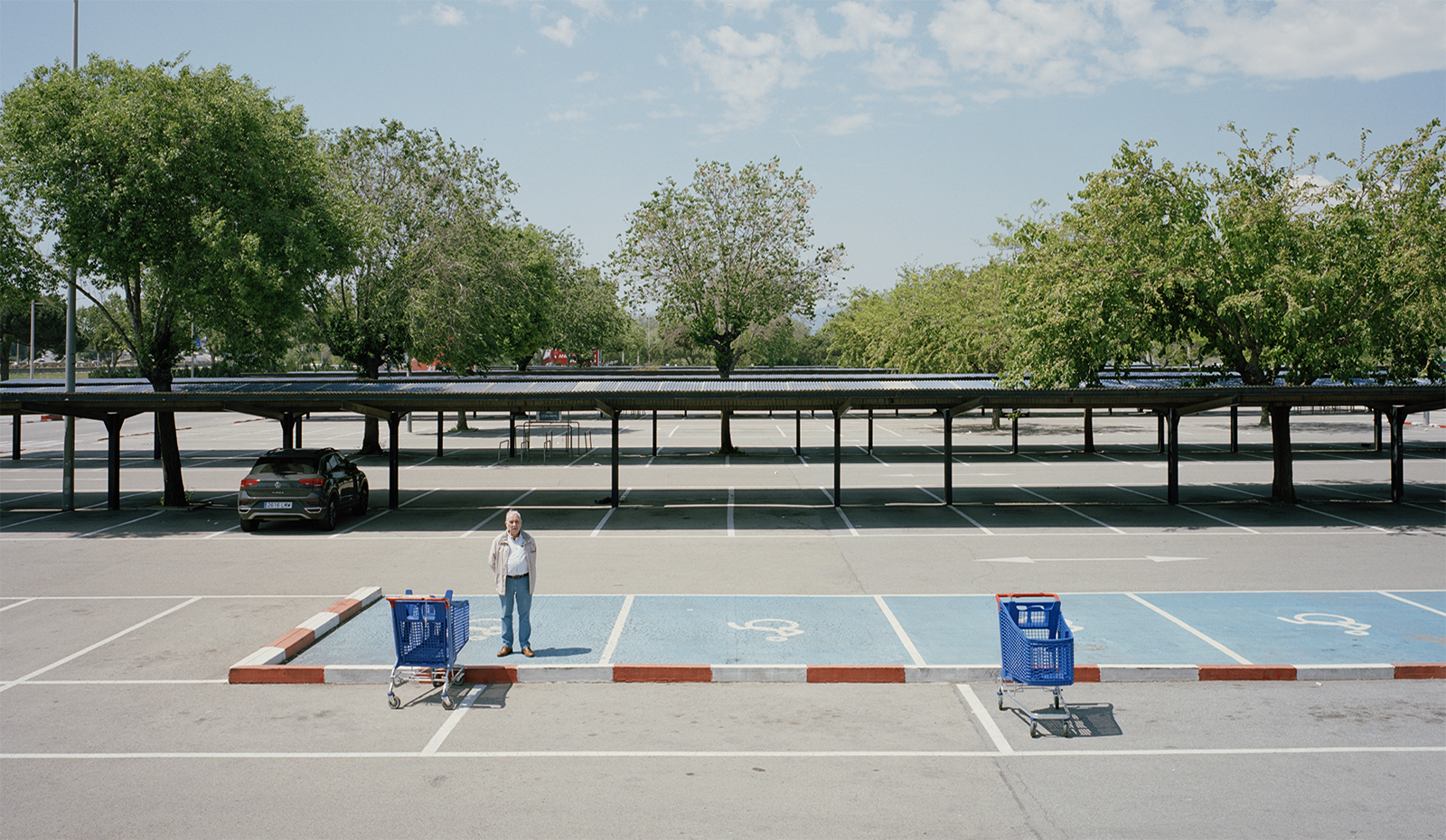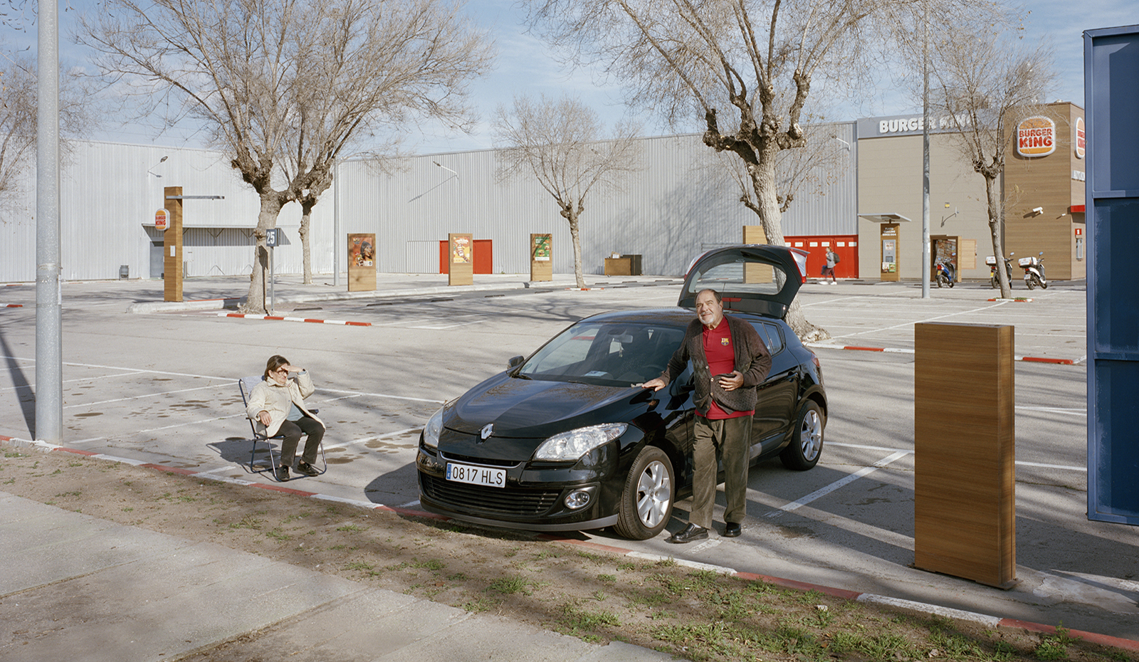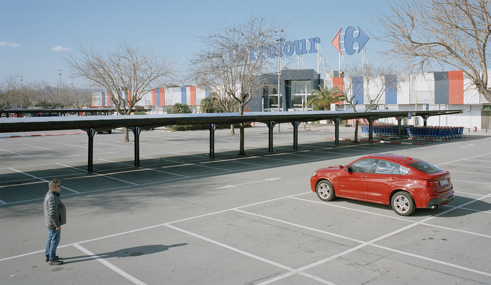 For the past ten years, every Sunday at 12 p.m. when the weather is sunny, the photographer, seated on the roof of his van about three and a half metres above the ground, has been welcoming people who come to spend their day off in the Carrefour car park in El Plat del Llobregat, on the outskirts of Barcelona, when the shopping centre is closed.