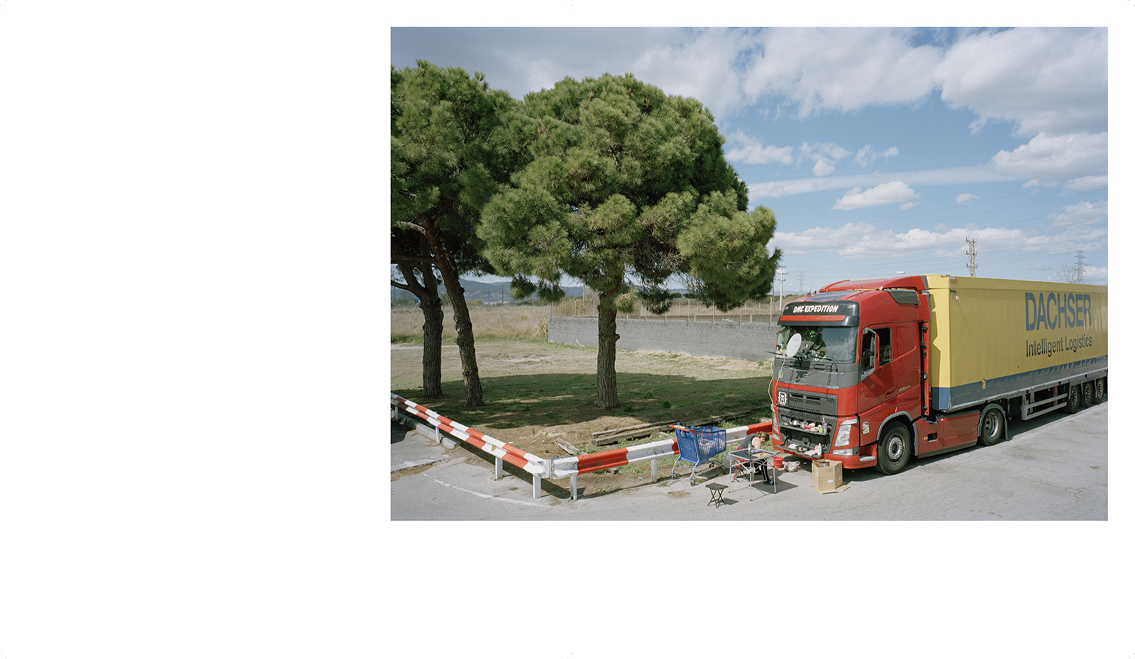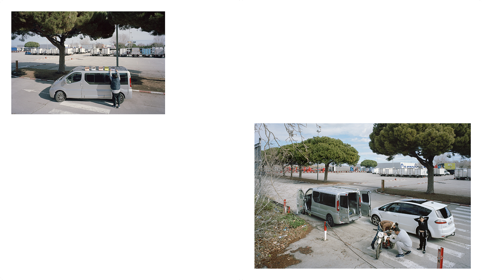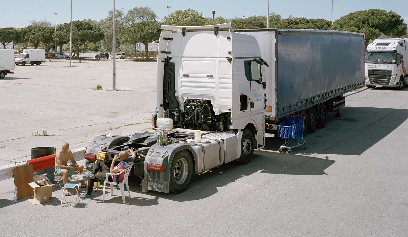 For the past ten years, every Sunday at 12 p.m. when the weather is sunny, the photographer, seated on the roof of his van about three and a half metres above the ground, has been welcoming people who come to spend their day off in the Carrefour car park in El Plat del Llobregat, on the outskirts of Barcelona, when the shopping centre is closed.