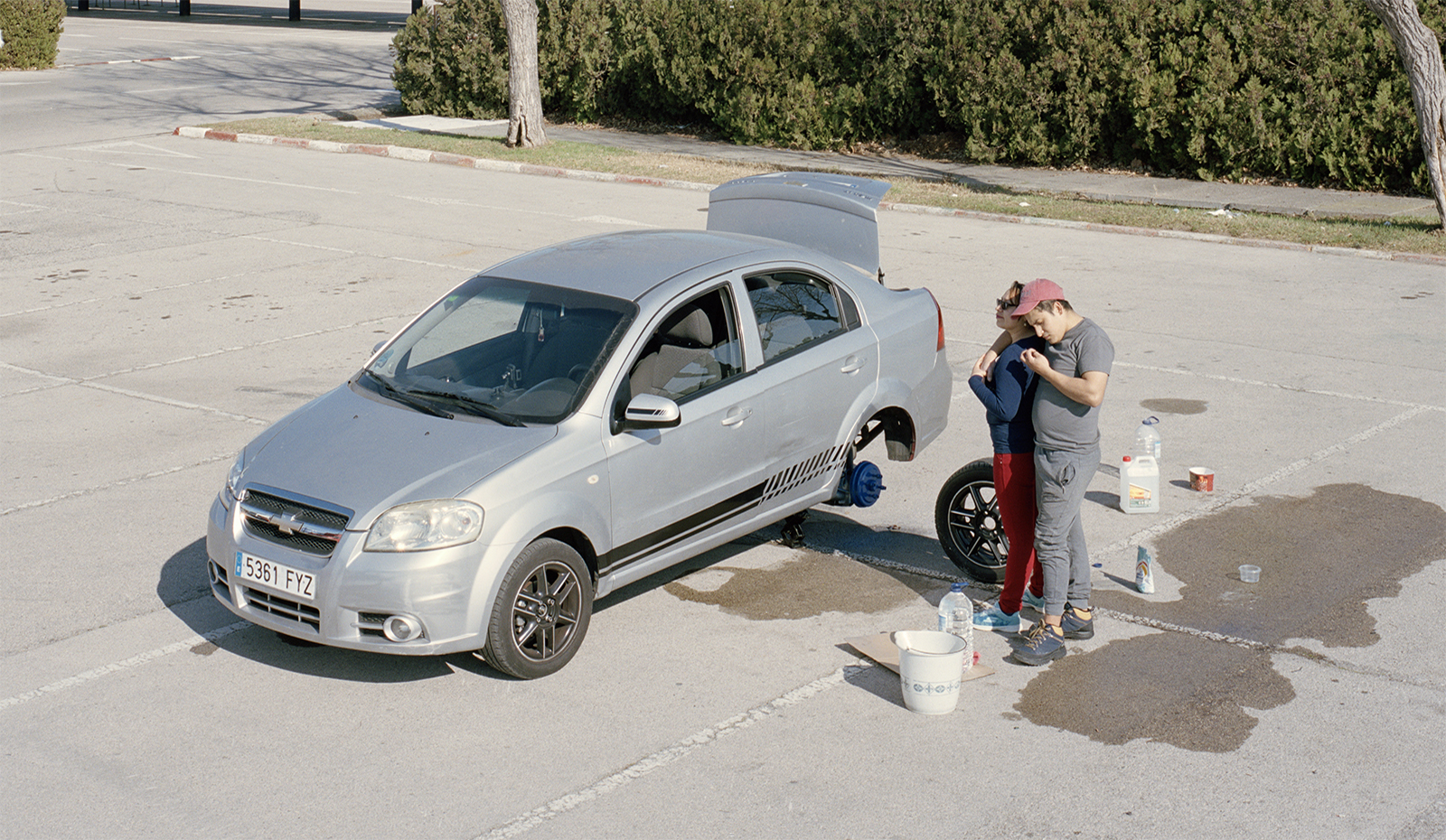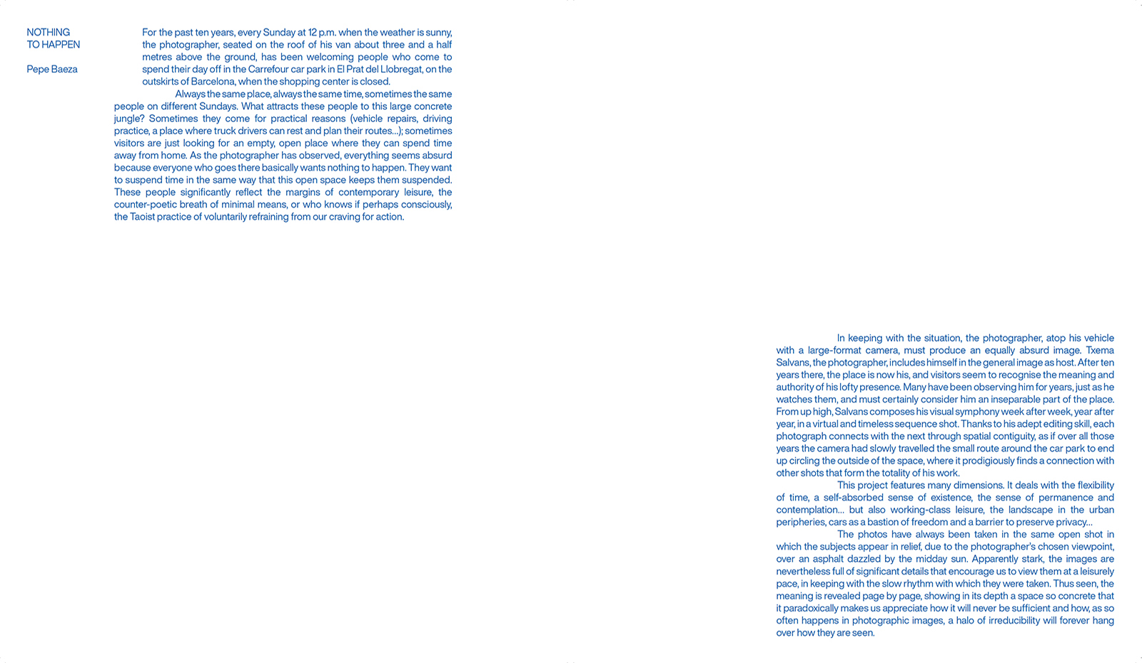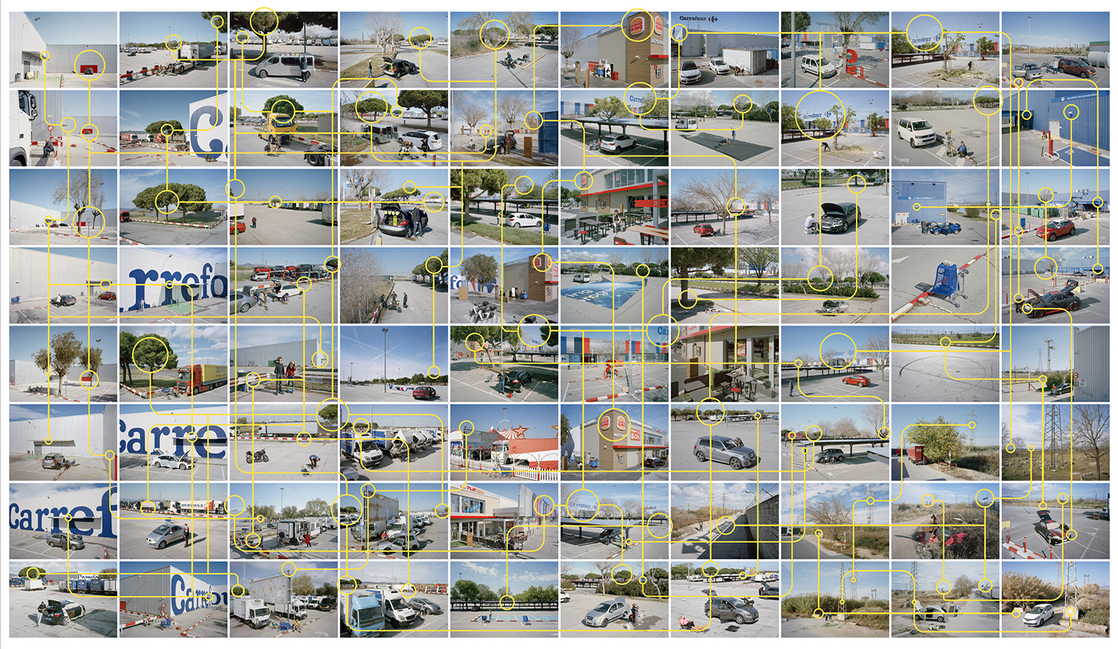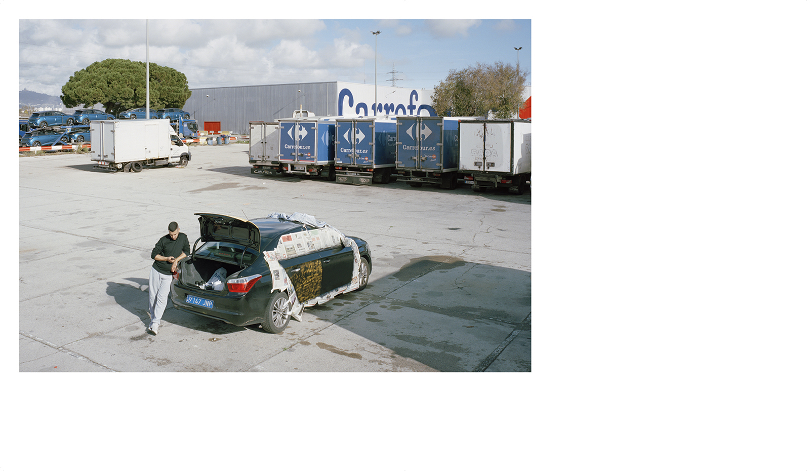 For the past ten years, every Sunday at 12 p.m. when the weather is sunny, the photographer, seated on the roof of his van about three and a half metres above the ground, has been welcoming people who come to spend their day off in the Carrefour car park in El Plat del Llobregat, on the outskirts of Barcelona, when the shopping centre is closed.